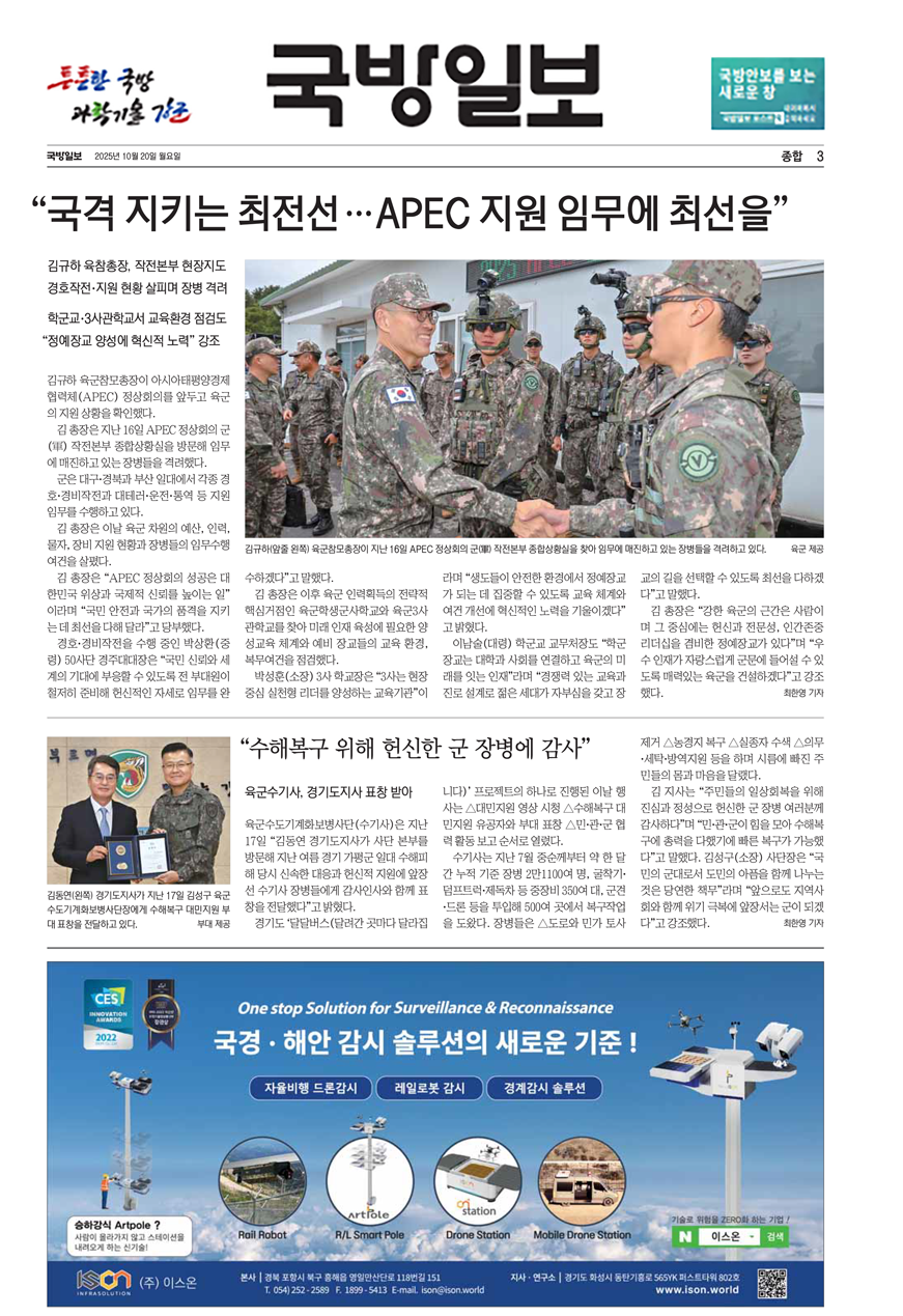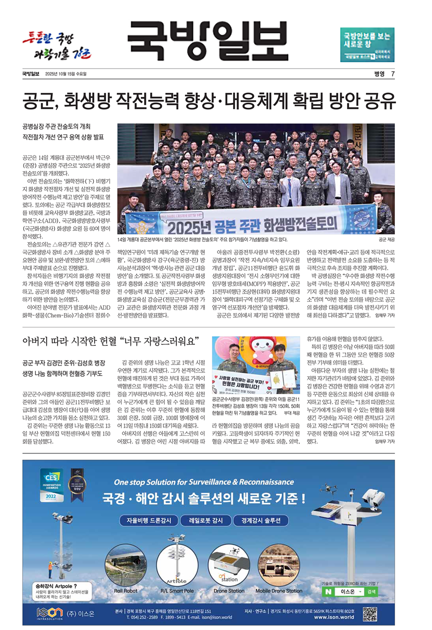 국방일보 10월 15일, 10월 20일자 신문 지면광고가 기재되었습니다.